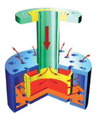 | DQJ浸沒式汽水混合器采用碳鋼或不銹鋼制造,內部的噴嘴為細小斜孔,蒸汽從噴嘴處高速噴入殼體內,對周圍冷水產生強烈的引射作用,冷水通過浸沒式汽水混合加熱器外壁上的斜向小孔進入浸沒式汽水混合器內與蒸汽高速混合換熱,進行全熱交換,而高速蒸汽在殼體內盤旋上升。形成的旋轉水汽,吸收蒸汽的功能,消除噪音,同時被加熱的水不斷從殼體上表引出,帶動浸沒式汽水混合加熱器周圍的水流動,從而加熱整個水箱中的水。 |