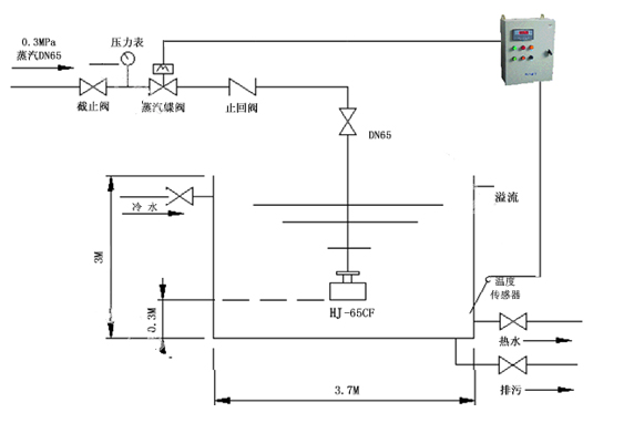3、引入水箱中的蒸汽管道應固定,不應有松動現象;